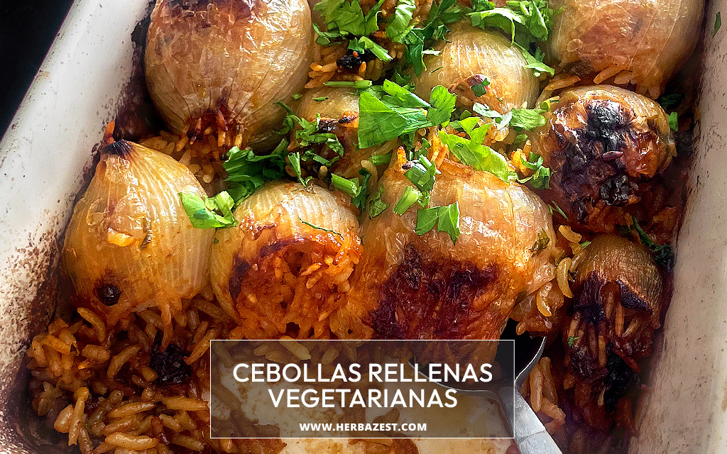 Estas cebollas rellenas vegetarianas son una guarnición deliciosa y abundante. Las cebollas dulces y caramelizadas se rellenan con una mezcla de arroz y especias, que incluyen el toque cálido de la canela y el comino, creando un bocado rico e irresistible. Horneadas a la perfección en un sabroso caldo de vegetales, estas cebollas con relleno vegetariano resultan tiernas, aromáticas y repletas de sabor, ya sea para una ocasión especial o una comida reconfortante.