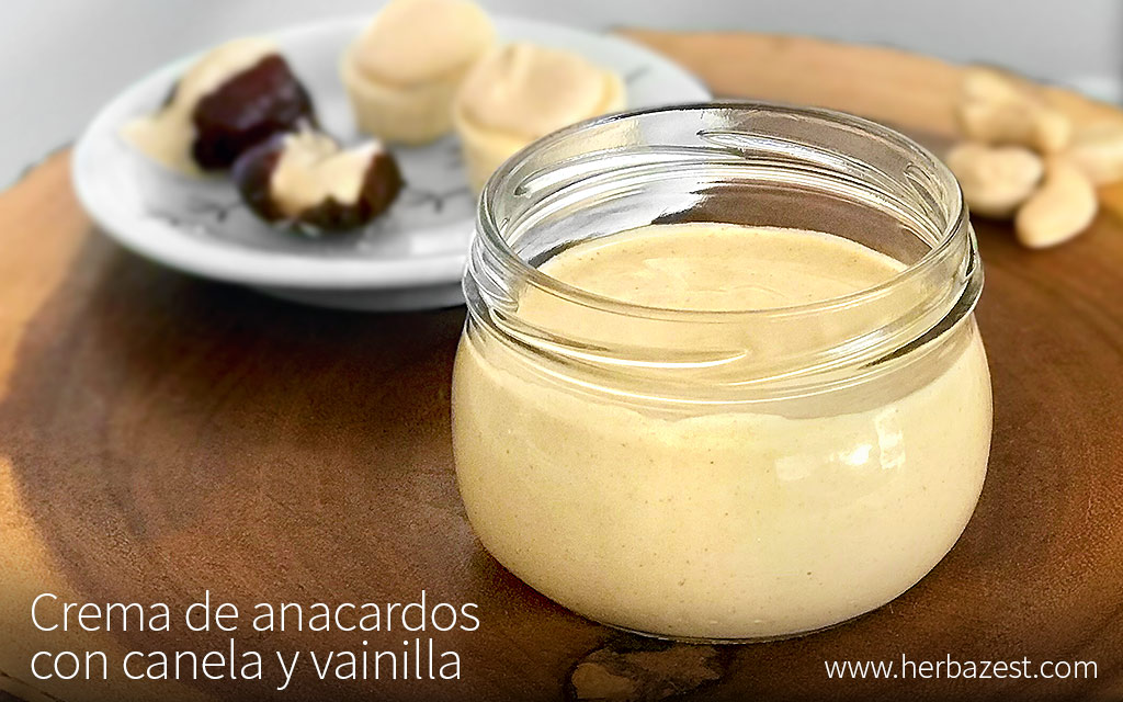 Esta crema de anacardos con canela y vainilla queda estupenda con rodajas de plátano, dátiles Medjool y panqueques caseros, como panqueques de lupín con almendras y arándanos, panqueques de amaranto y zanahoria, o panqueques de lúcuma.