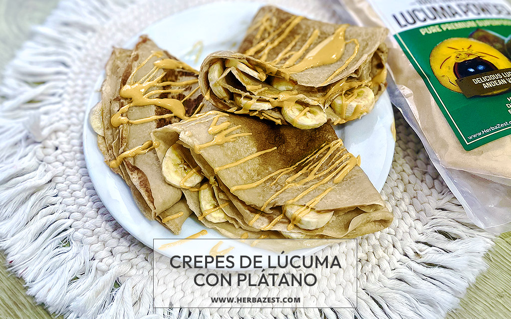Estos crepes saludables con lúcuma en polvo y platano, o banana, son una deliciosa manera de empezar el día. Son rápidos y fáciles de preparar, y requieren de pocos ingredientes. Gracias a la dulzura suave y natural de los plátanos maduros y la lúcuma, estos crepes se pueden rellenar con una variedad de ingredientes, como mantequilla de maní, crema de chocolate casera, crema batida y frutas frescas.