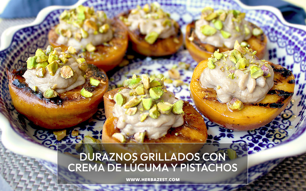 ¿A quién no le gusta un postre saludable, delicioso y que se vea impresionante en la mesa? ¡Estos duraznos a la parrilla son una garantía de éxito! Conocidos por su suave dulzura, los duraznos son ricos en zinc, fósforo y vitaminas A y C para la salud de los ojos, los huesos y el sistema inmunitario. La lúcuma que se usa en la crema de anacardos que corona estos duraznos es una fruta sudamericana apreciada por su bajo índice glucémico y su sabor único. Cubiertos con pistachos, que ofrecen una buena dosis de proteínas, fibra y grasas saludables, estos duraznos grillados son un postre tan memorable como saludable.