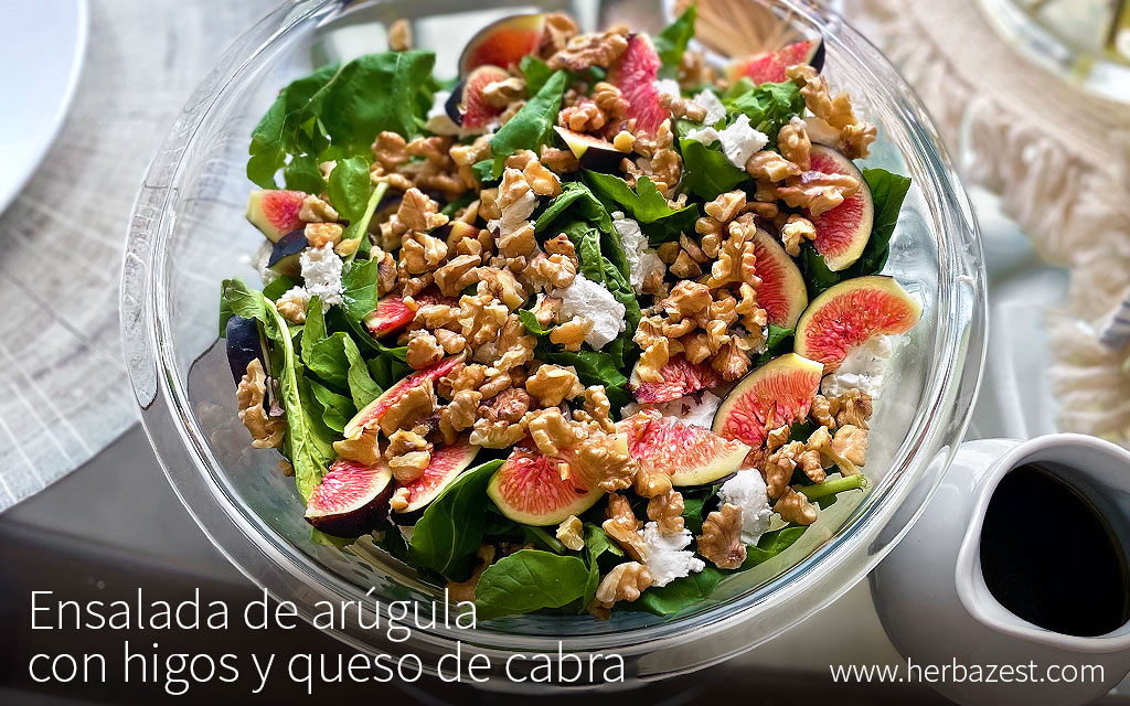 Esta ensalada de arúgula, rápida y fácil, tiene la combinación perfecta de sabores y texturas: la arúgula ligeramente picante, combina a la perfección con la delicada dulzura de los higos suaves, la untuosidad del queso de cabra y las nueces crujientes, todo ello rociado por un delicioso aliño de miel y vinagre balsámico. Esta saludable ensalada es maravillosa sola o como guarnición.