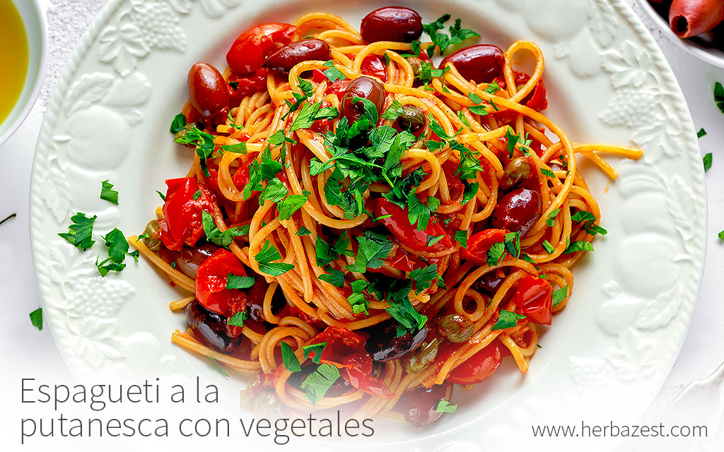 Este espagueti vegetariano a la putanesca es una excelente opción para un almuerzo saludable o una cena rápida.