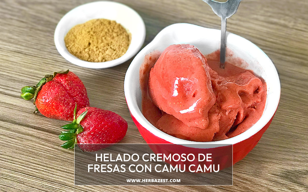 No hay nada más satisfactorio que disfrutar de un delicioso helado casero, sabiendo que está hecho con ingredientes saludables. Esta receta combina fresas congeladas con yogurt, lleno de probióticos, y camu camu, rico en vitamina C. Libre de azúcar refinada, este cremoso helado de fresas con camu camu está naturalmente endulzado con miel de agave.