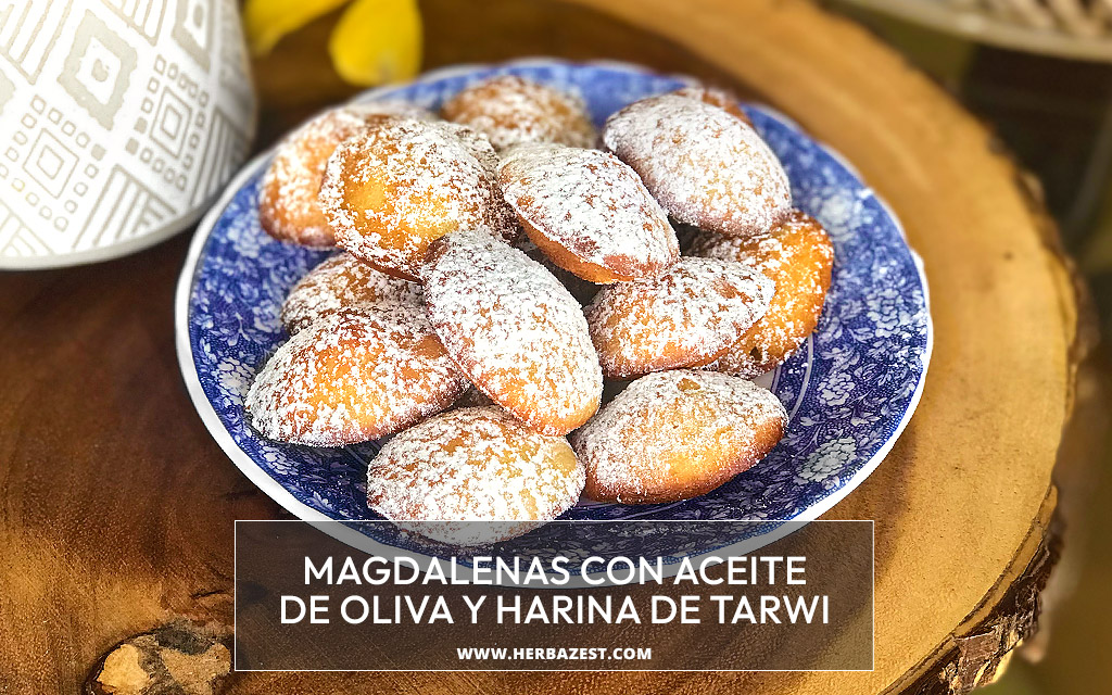 Suaves y esponjosas, estas magdalenas con aceite de oliva son la compañía perfecta para la hora del té o el café. Esta versión particular de los famosos bizcochuelos franceses, del tamaño de un bocado, es rica en nutrientes, gracias a la harina de tarwi (una leguminosa también conocida como lupín), y el aceite de oliva, que aporta proteínas y grasas saludables. Espolvoreadas con azúcar en polvo, estas magdalenas son ligeramente dulces y tan deliciosas que pueden resultar adictivas.