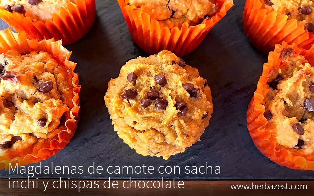 Hechas con ingredientes saludables, estas magdalenas de camote, o batata, son una excelente alternativa a la versión llena de azúcar refinado que puede encontrarse en tiendas. La delicada dulzura del camote reduce la necesidad de azúcar agregado, mientras que su textura convierte estas magdalenas en una delicia húmeda, rica en fibra dietética y betacaroteno. Los matices de nuez del sacha inchi combinan bien con las harinas de avena y de almendras, y su alto contenido de proteínas garantiza satisfacción prolongada.