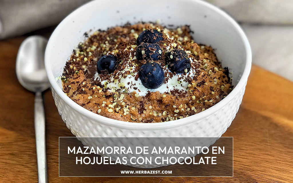 Esta mazamorra cremosa de amaranto y chocolate es ideal para recargar energía por las mañanas. Se trata de un desayuno completo, ya que está repleta de nutrientes del cacao, que mejoran el estado de ánimo, y de las hojuelas de amaranto, que aportan energía, proteínas, fibra y antioxidantes, entre otros. Endulzada naturalmente con plátano (banana), que también aporta una textura cremosa, esta mazamorra saludable con amaranto y chocolate proporciona bienestar y nutrición desde el primer bocado.