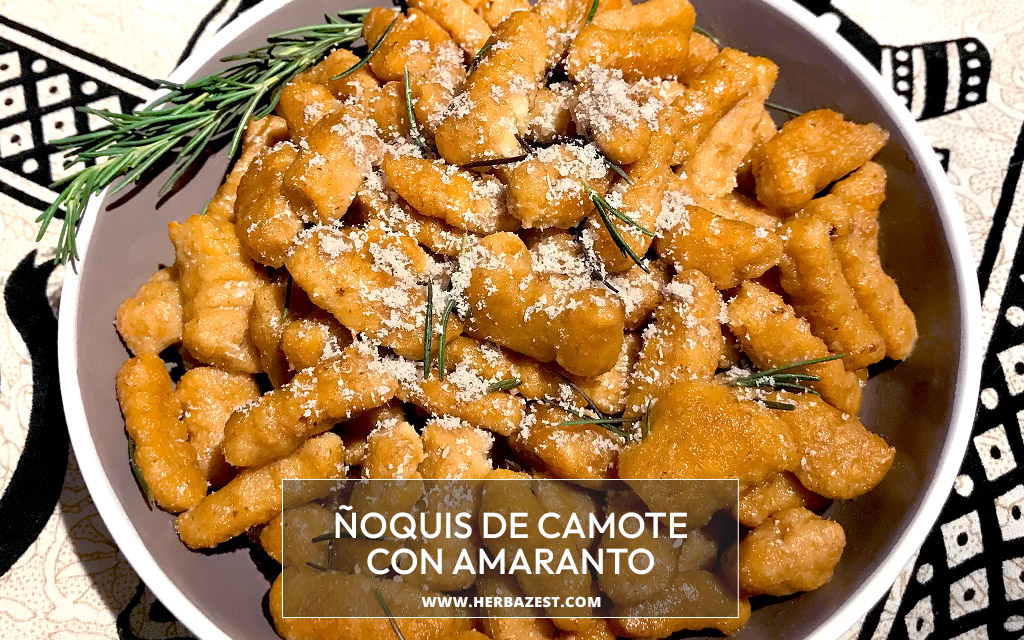 Aunque al principio pueda parecer intimidante, hacer ñoquis caseros es bastante fácil. Esta versión saludable del clásico tradicional italiano se hace con camote y una combinación de harinas libres de gluten. El camote aporta una amplia gama de nutrientes clave, incluyendo vitaminas A, B y C, así como manganeso y cobre. También aporta una textura cremosa y un tono naranja único de estos ñoquis caseros. Lo que ayuda a mantenerlos unidos son las harinas de avena y amaranto, que constituyen una buena fuente de fibra dietética y proteínas, particularmente en el caso del amaranto, que aporta todos los aminoácidos esenciales. Condimentados con comino y servidos con romero fresco, estos ñoquis caseros de camote y amaranto serán difíciles de olvidar.