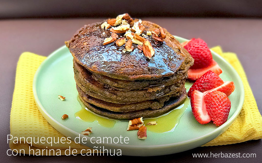 Con los camotes horneados que sobraron de ayer se pueden preparar estos rápidos y esponjosos panqueques con harina de cañihua. Incluyen la combinación clásica de especias que combinan tan bien con los camotes, como la canela y la nuez moscada. Además, están enriquecidos con proteínas de origen vegetal y hierro de la de cañihua.