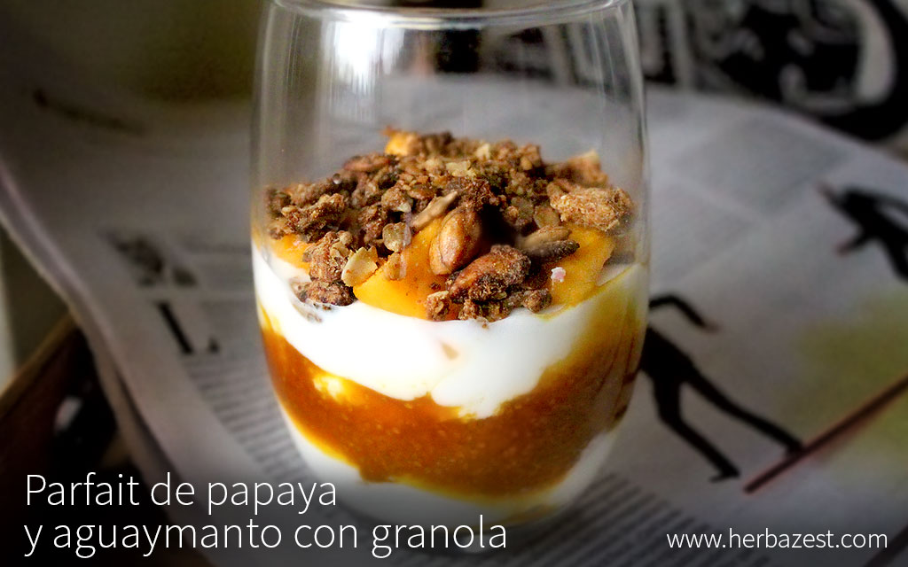 Esta receta es ideal para preparar con anticipación y puede ser un nutritivo desayuno, además de una manera deliciosa de utilizar la mermelada de aguaymanto. Esta fruta exótica, también conocida como uchuva, tiene un sabor adictivo, así como buenas cantidades de fibra dietética y compuestos antiinflamatorios. La papaya, por otro lado, es baja en calorías y rica en nutrientes que ayudan a reducir el colesterol, aumentar la inmunidad y mejorar la digestión. El yogur proporciona buenas cantidades de probióticos para una óptima función intestinal, mientras que la granola proporciona una deliciosa textura crujiente.
