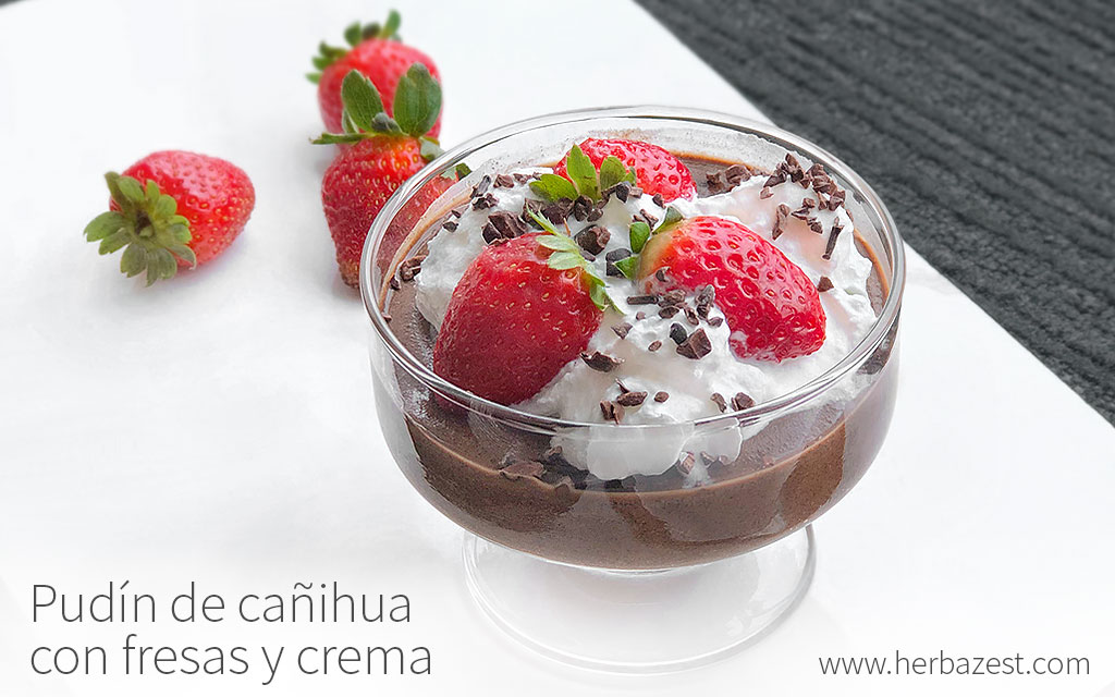 Es posible decorar este pudín de cañihua con los ingredientes que se tengan a mano. Las fresas y la crema batida de coco siempre son una excelente combinación, especialmente cuando se acompañan con semillas o nibs de cacao, ricos en teobromina.