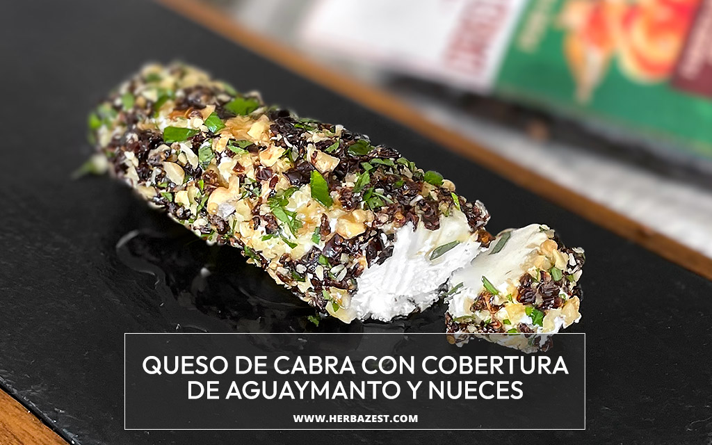 Este queso de cabra recubierto con aguaymanto deshidratado y nueces es un aperitivo rápido y sencillo, envuelto con una mezcla perfectamente equilibrada de bayas de aguaymanto ligeramente ácidas, crujientes nueces de Castilla y perejil fresco. Se puede disfrutar con chips de pan pita o untado en un crostini.