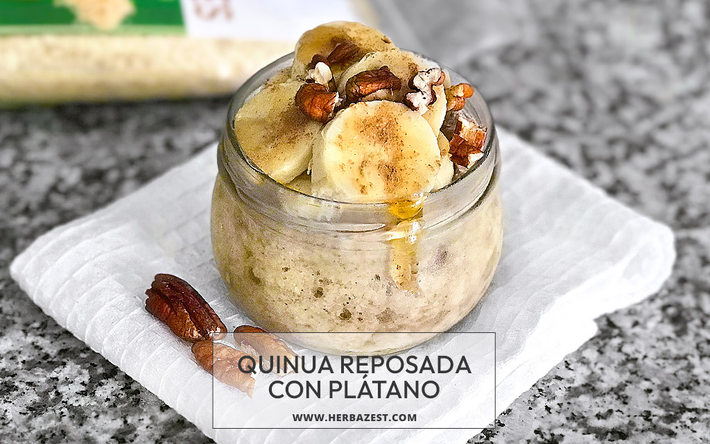 Como alternativa a la tradicional avena, esta hojuelas de quinua reposadas con plátano son un desayuno verdaderamente nutritivo y delicioso. La quinua es una gran fuente de proteína completa y fácil de digerir, en tanto que los plátanos (o bananos) ofrecen una gran riqueza en minerales esenciales, tales como el potasio y el manganeso. Saborizada con sirope de arce y canela, esta quinua reposada con plátano puede perfectamente ser un postre para cualquier ocasión.
