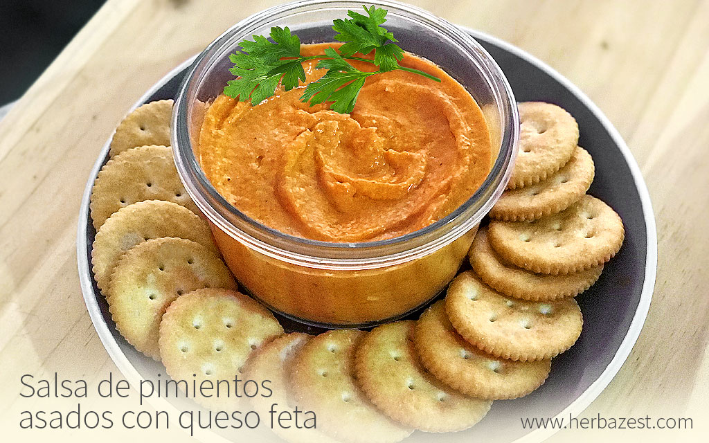 Esta salsa de pimientos asados con queso feta es rápida y fácil de preparar, excelente para acompañar galletas saladas y verduras frescas. También es una deliciosa alternativa para untar en sándwiches saludables. Al asarse, los pimientos rojos, o morrones, adquieren un sabor ahumado y ligeramente dulce que se equilibra con el sabor salado del queso feta.