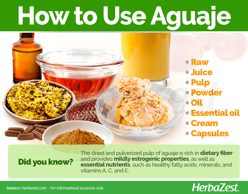 Capsules. In this supplemental form, aguaje provides great concentrations of estrogenic compounds, vitamins, and essential fatty acids, for vitamin A deficiency prevention and hormonal health.