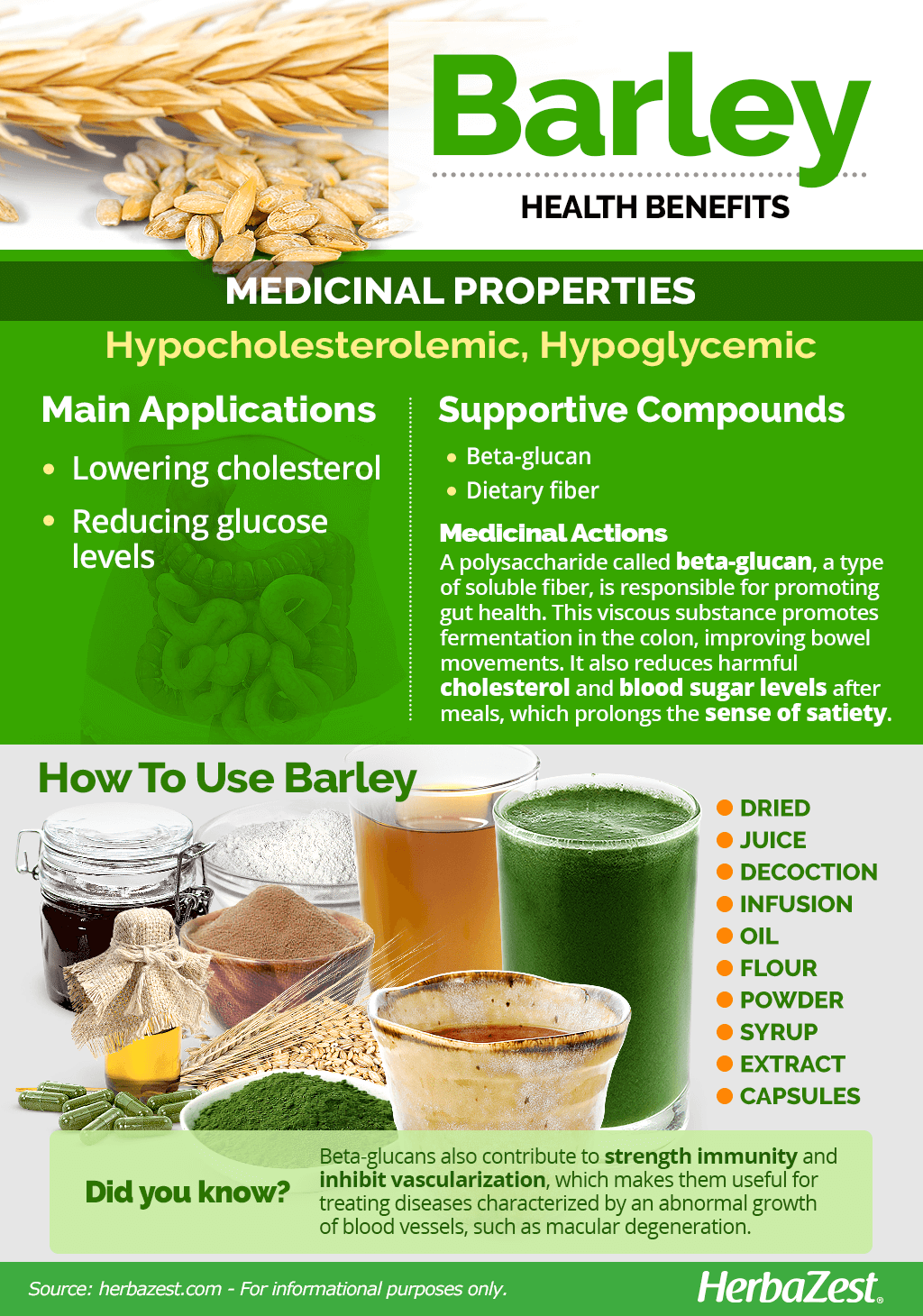 Barley has a long history of culinary use, but it is also commonly used in several medicinal preparations. Either option will allow one to reap the plant's health benefits.