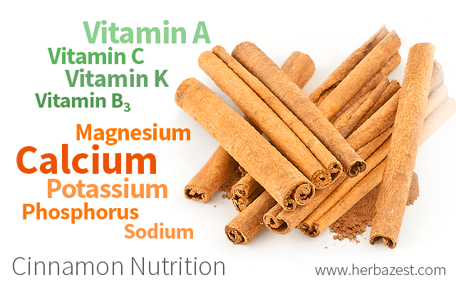 Being a popular culinary spice, the nutritional value of cinnamon is often overlooked. The different varieties and types of cinnamon can slightly vary in nutritional composition. The two main types of the spice, Ceylon, or real cinnamon (Cinnamomum verum) and cassia, or Chinese cinnamon (Cinnamomum cassia), have varying levels of some nutrients possibly because of their different origins. Learn more about the many nutrients in cinnamon and the benefits they hold.