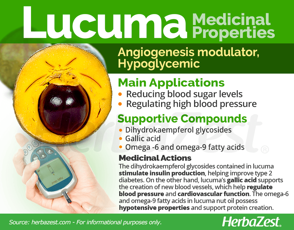 Reducing blood sugar levels. In spite of its delicate sweetness, lucuma is not only low in sugar content, but also helps control glucose levels in people with diabetes.