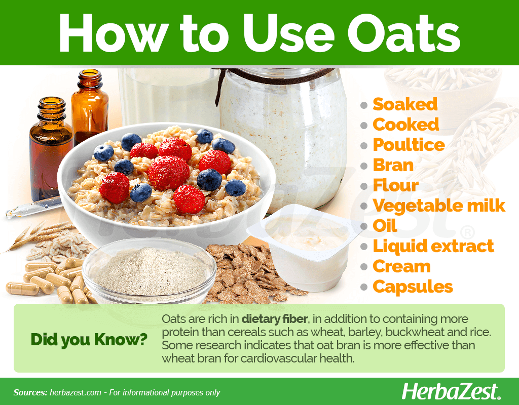 Oats' nutritional benefits are mostly obtained from culinary preparations; however, they can also be taken for medicinal purposes in herbal remedies or as a supplement.