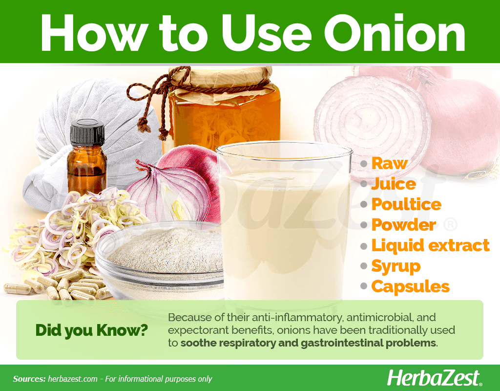 The onion bulb is highly regarded around the world as a flavor enhancer for salads, sandwiches, stews, and many other types of preparations. However, herbal remedies concentrate the medicinal properties of onion.