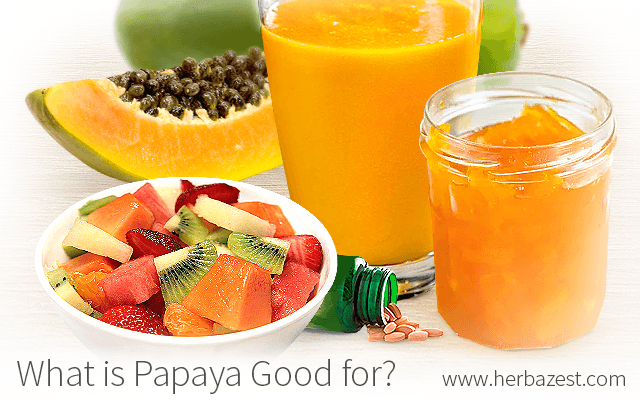 Papaya-based health supplements claim to provide the main papaya benefits in a safe, medicinally-potent dosage. Many of papaya medicinal uses are focused on treating constipation, diarrhea, indigestion, parasites, and various other disorders. These uses revolve around papaya's enzyme papain, which is contained in high amounts in the latex of the unripe fruit and helps break down proteins, thus improving digestion. It has also been used to reduce inflammation caused by dental healthcare and surgery.