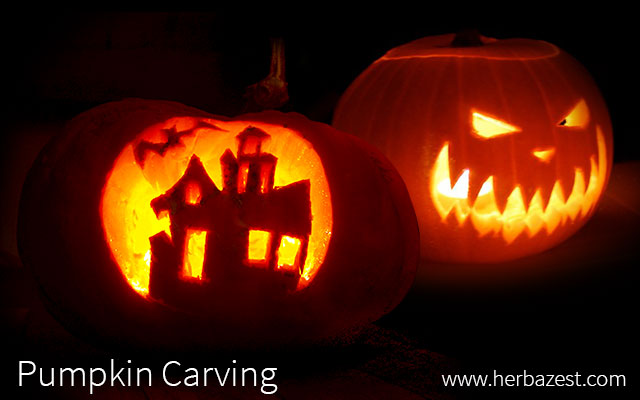The tradition of carving pumpkins can be traced 2,000 years ago to Celtic harvest celebrations that included the carving of tiny lanterns, which were placed on porches and doorsteps to welcome ancestors and ward off evil spirits. Irish immigrants continued the tradition in the Americas, replacing the original turnips and gourds with pumpkins, which were larger and native to the region.