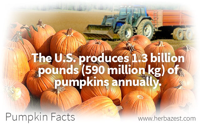 - The U.S. produces 1.3 billion pounds (590 million kg) of pumpkins annually.