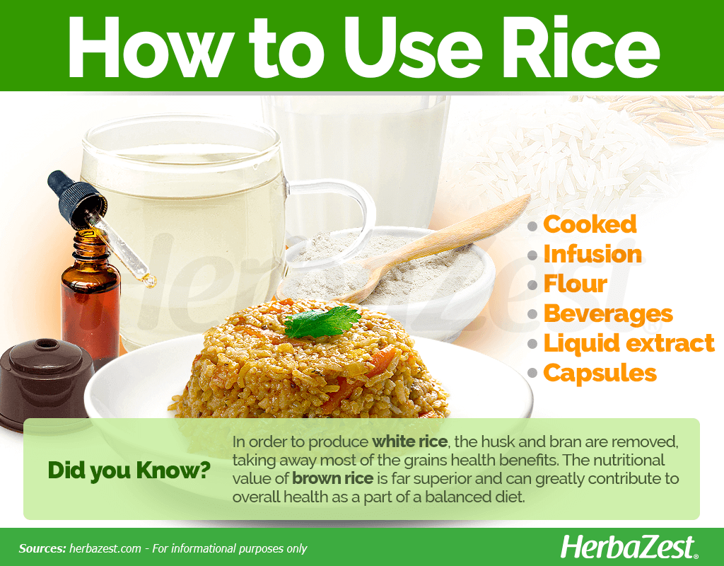 The culinary uses of rice amount to an extensive list, with various traditional Chinese medicine herbal preparations found around the world. Many of these remedies are still valued today, and due to a significant number of Asian inhabitants in many countries, they have risen in popularity and are used by advocates of natural medicine everywhere.