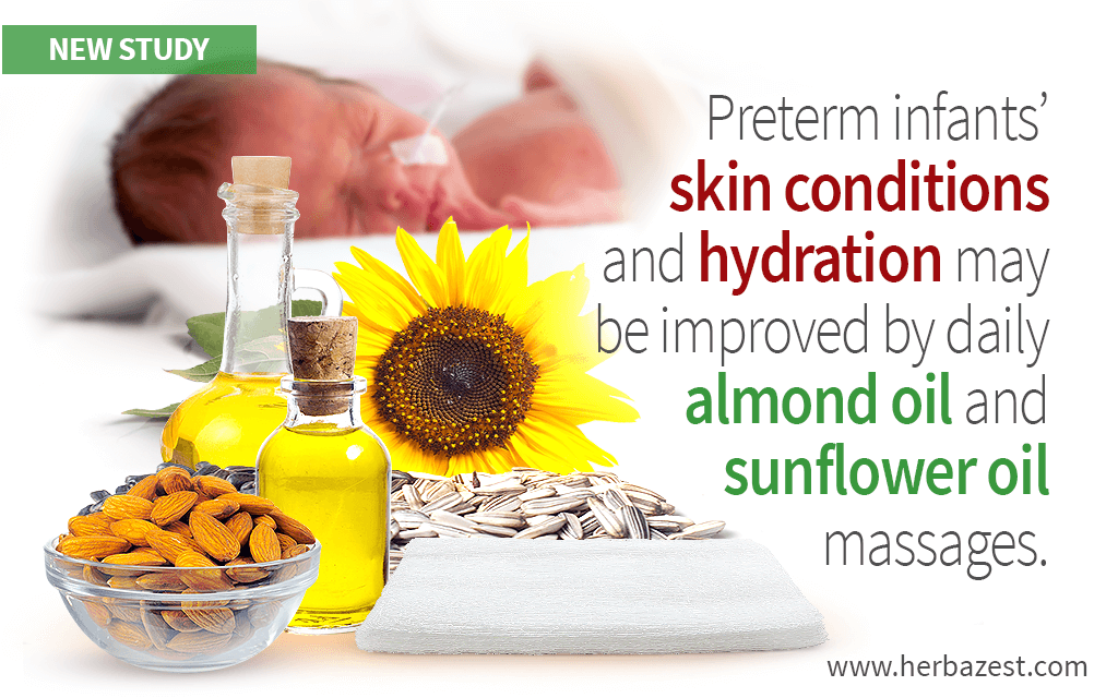 The findings of this study suggest that almond oil and sunflower seed oil may have beneficial effects on preterm infants' skin. They add to the discoveries of previous studies showing that these oils have moisturizing and skin healing effects in babies.