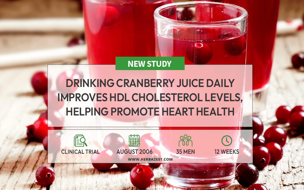 - The British Journal of Nutrition, Favourable impact of low-calorie cranberry juice consumption on plasma HDL-cholesterol concentrations in men, 2006