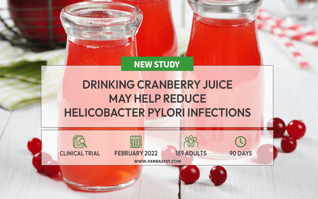 All 189 participants tested positive for H. pylori at the beginning of the study. After 90 days, 14.43% of the cranberry juice participants tested negative for H. pylori, in comparison to 5.44% in the placebo group.
