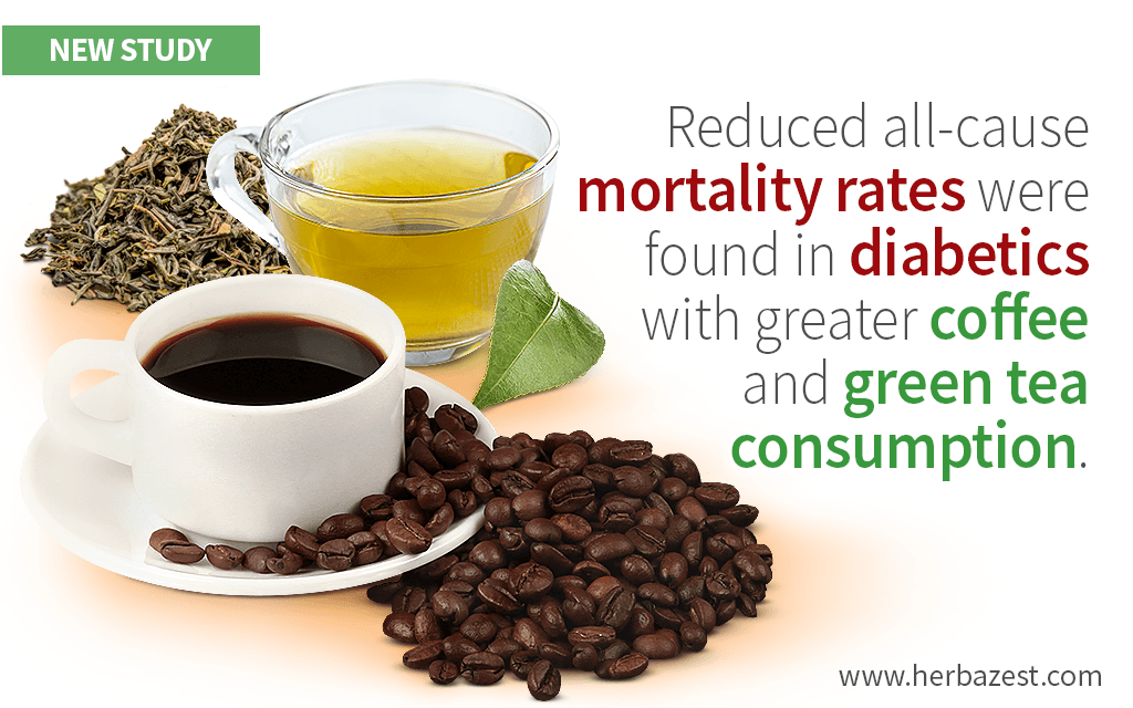 The results of this study suggest a strong association between higher green tea or coffee consumption and lower mortality. The effects seem to be additive in patients with type 2 diabetes who are both coffee and green tea drinkers.