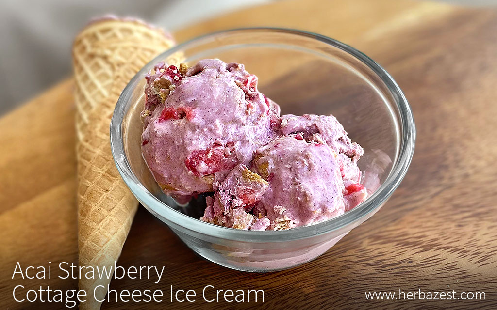 This trendy cottage cheese ice cream is packed with protein and antioxidants. Acai gives it a beautiful color, deep flavor, and beneficial compounds, while fresh strawberries and crackers create an irresistible texture that will leave you asking for more.