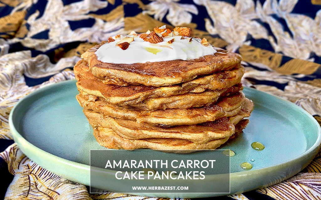 Top your amaranth carrot cake pancakes with coconut yogurt, maple syrup, or whipped cream cheese. You may also sprinkle some crushed nuts and a dash of cinnamon.