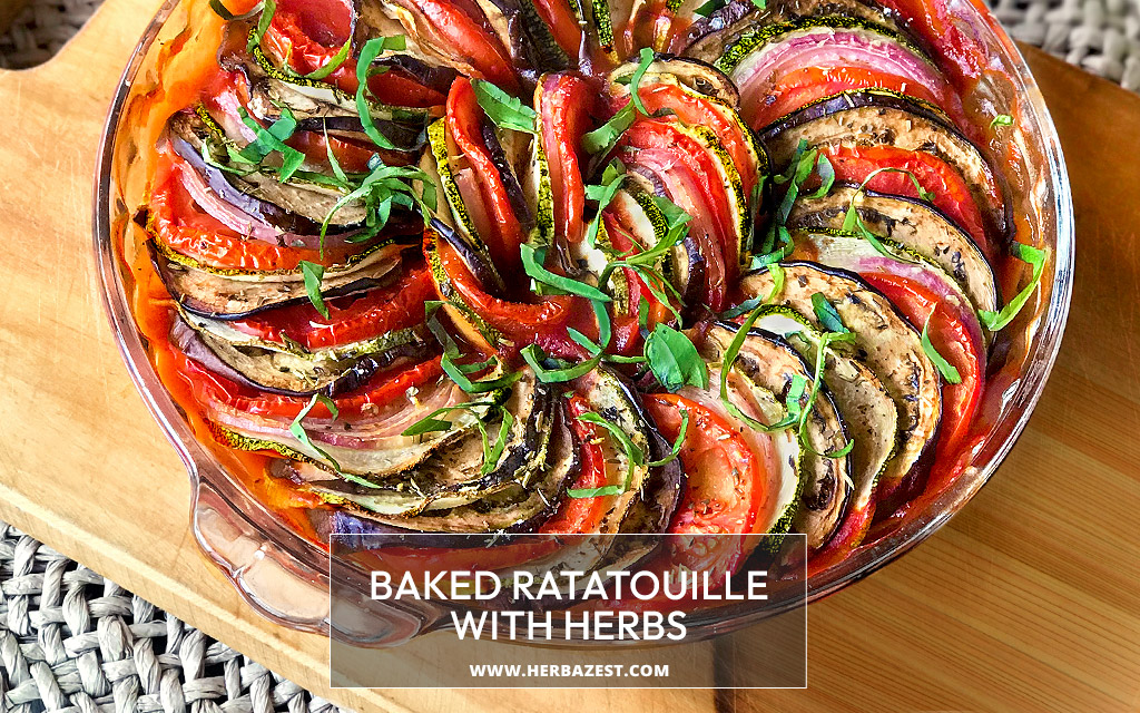 - Arrange the sliced vegetables in alternating pattern. Sprinkle with salt, pepper, and the rest of dried herbs and drizzle with olive oil.(5 minutes)