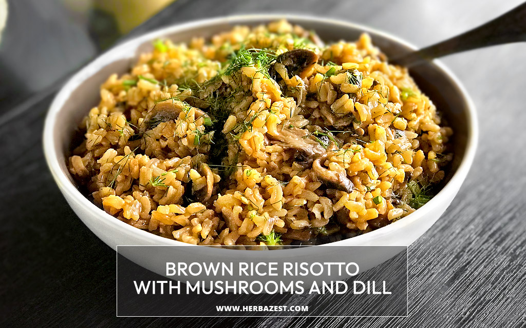This brown rice risotto is a delicious complement to a healthy lunch or a nutritious dinner. It's packed with great flavor and wholesome ingredients, like fiber-rich brown rice and copper-rich Cremini mushrooms. This flavorful risotto is also enhanced with aromatic and nutritious dill.