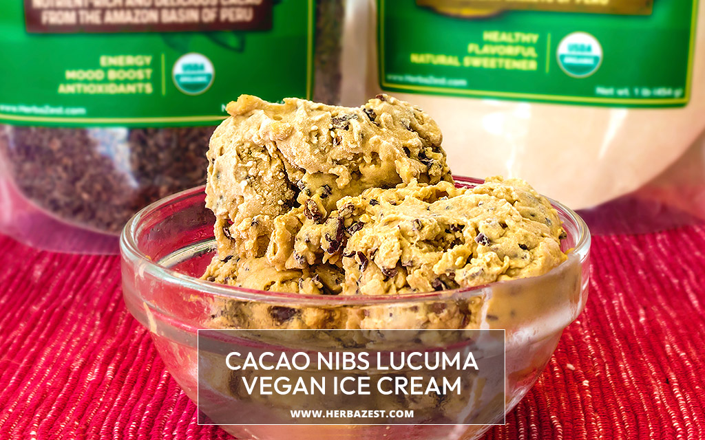Cacao, whether in a nib or powder form, is a great addition to any dessert and a perfect match to the Andean lucuma fruit. Lucuma's unique flavor and ripe bananas are a great combination that takes cacao nibs to gourmet level. Try this vegan, easy-to-make ice cream at home!
