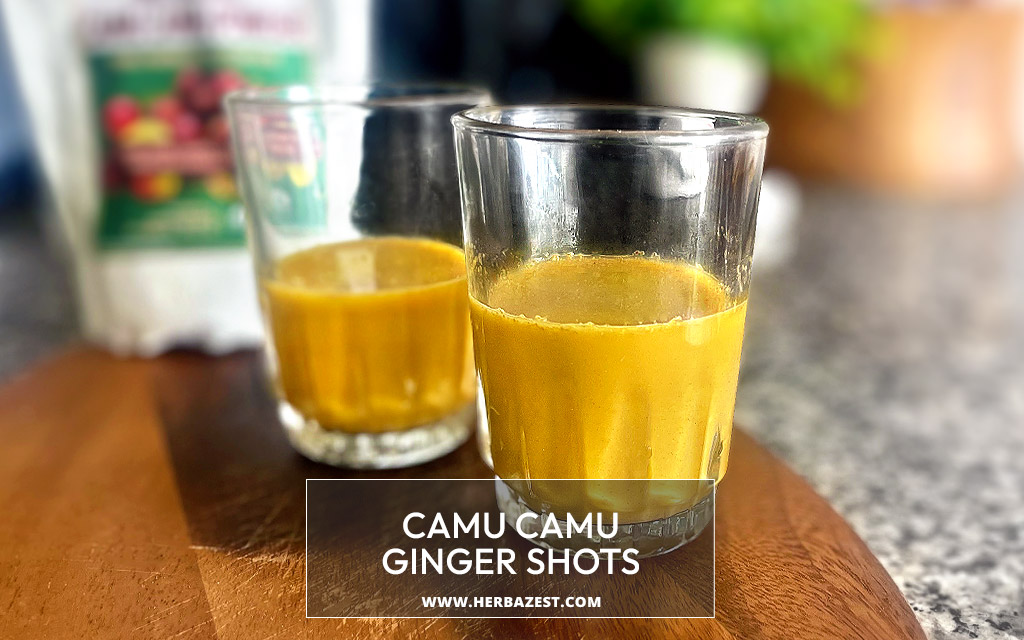 Skip the store-bought and whip up these easy, nutrient-packed ginger shots at home! Fresh ginger, juicy orange, and tangy camu camu combine with turmeric and
