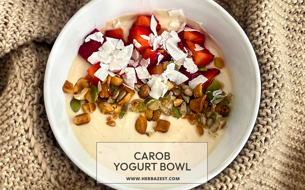 The carob yogurt bowl is a tasty and nutritious breakfast that blends protein- and probiotic-rich Greek yogurt with subtly sweet, caramel-like carob. With optional honey for added sweetness, this bowl can be customized with your favorite toppings. Packed with nutrients and full of flavor, it's a delicious way to refresh your morning routine and start your day on a wholesome note.