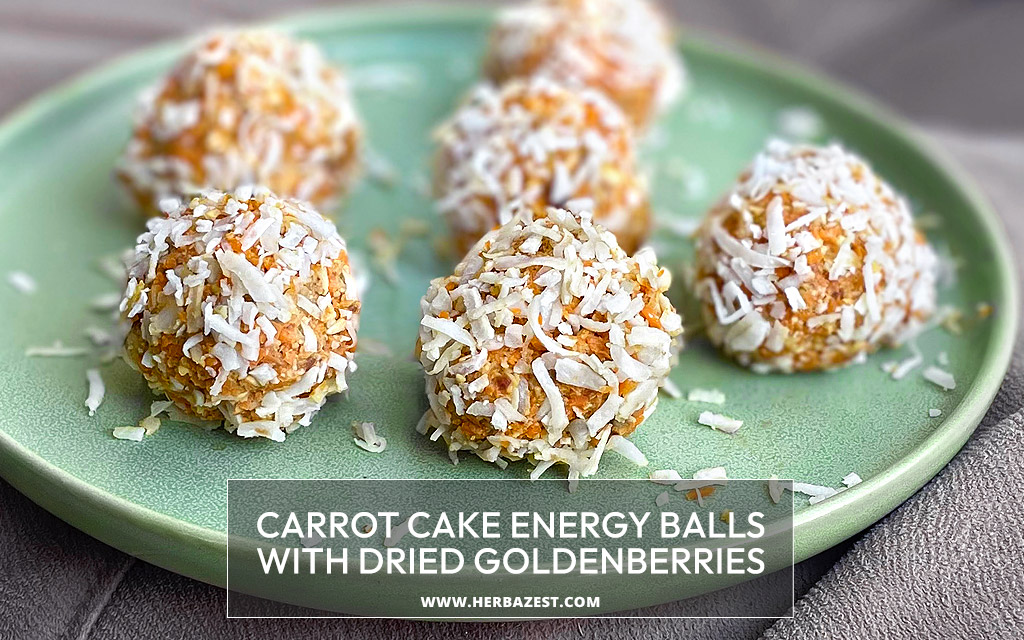 These carrot cake energy balls are soft, aromatic, and delicious. With every bite, you're getting a whole bunch of important nutrients and supporting compounds from goldenberries, dates, oats, carrots, coconut, and others. Keep them chilled and grab one when you're in need of a nutritious snack.