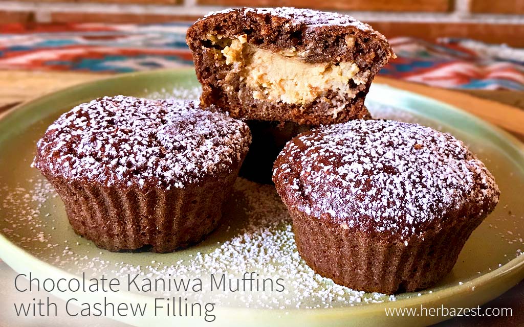 These easy muffins offer a delicious combination of flavors and textures. They are a little more dense than regular muffins thanks to the addition of flaked kaniwa, which increases their protein content and enriches them with iron. They are also filled with maple-flavored cashew cream, creating a lovely contrast between the chocolaty outside and creamy inside.