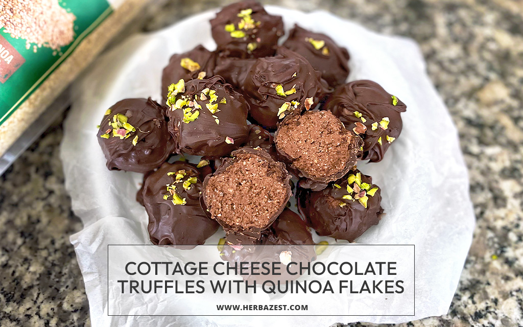 These no-bake chocolate truffles are extra protein-rich thanks to cottage cheese and quinoa, blended into a smooth, fudgy bite with deep cacao flavor. Finished with a thick layer of chocolate and pistachios on top, they are wholesome, incredibly easy to make, and perfect to keep on hand for quick snacks or little cravings.