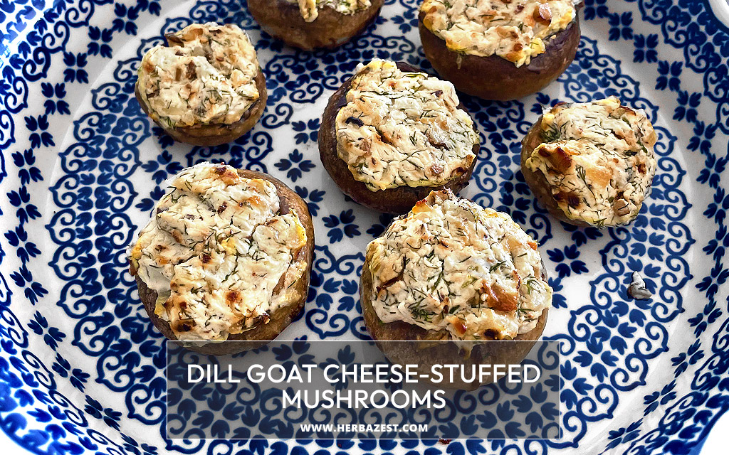 These melt-in-the-mouth stuffed mushrooms are a wonderful appetizer or snack. Soft and juicy mushroom caps are stuffed with a flavorful mixture of goat cheese, sautéed onions and garlic, and fresh dill. They will look stunning on the holiday table and are guaranteed to please crowds when you're entertaining.