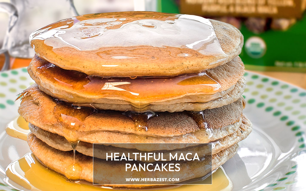 The stimulating properties of maca, which is also a great endocrine modulator and hormone balancer for both men and women, can be enjoyed in this delicious recipe that includes cinnamon and allspice, two flavorful spices with great medicinal benefits, as well as apple sauce, which contributes to make great, fluffy pancakes.