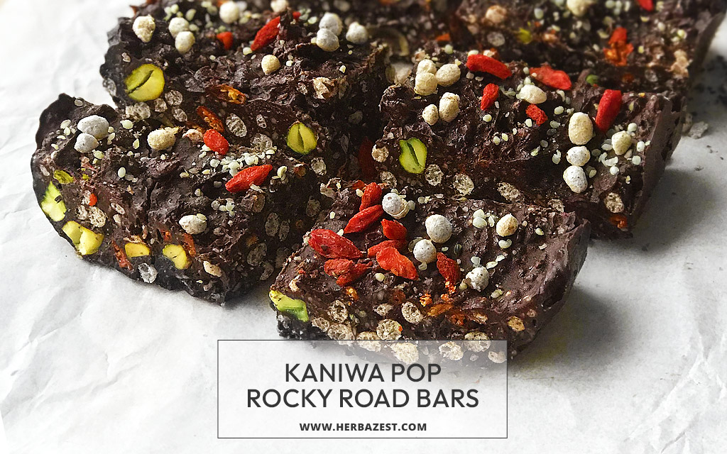 These crunchy rocky road bars are packed with wholesome ingredients that give you the nutrients you need to feel your best. Both kaniwa and pistachios contain high-quality protein, while coconut and hemp are good sources of fat and fiber. Cacao and goji, on the other hand, are known to contain high levels of antioxidants.