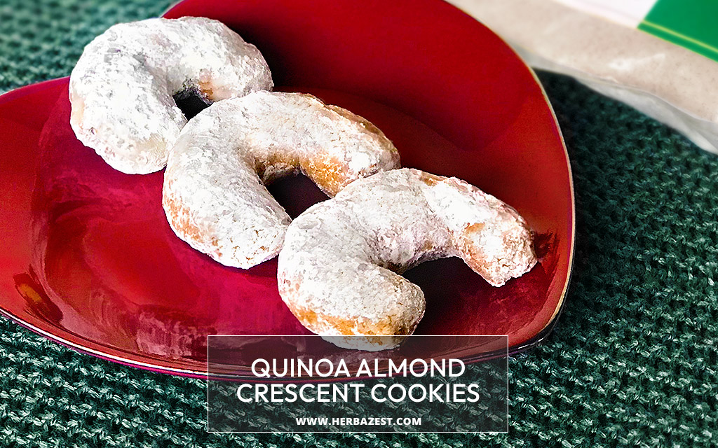 These crescent cookies are made with gluten-free flours from almonds and quinoa, making them a wonderful option if you are looking for a wholesome and flavorful treat to satisfy your sweet tooth. Their nuttiness, tenderness, and melt-in-your-mouth deliciousness will add charm to this season and beyond.
