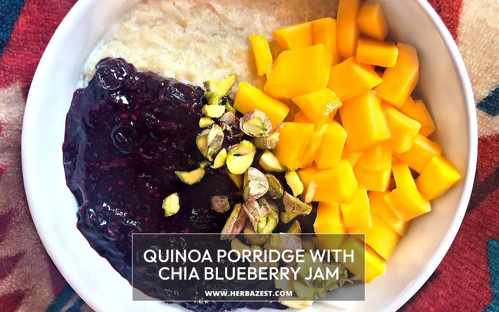 This quinoa flake porridge is a delicious idea for a quick and healthy breakfast. It will be on your plate in less than 5 minutes and will fill your body with key nutrients. Starting your day with proteins, like those found in quinoa, has been shown to help curb appetite and maintain proper weight. When accompanied with homemade, antioxidant-rich chia blueberry jam, this quinoa porridge also offers fiber that will help regulate bowel functions.