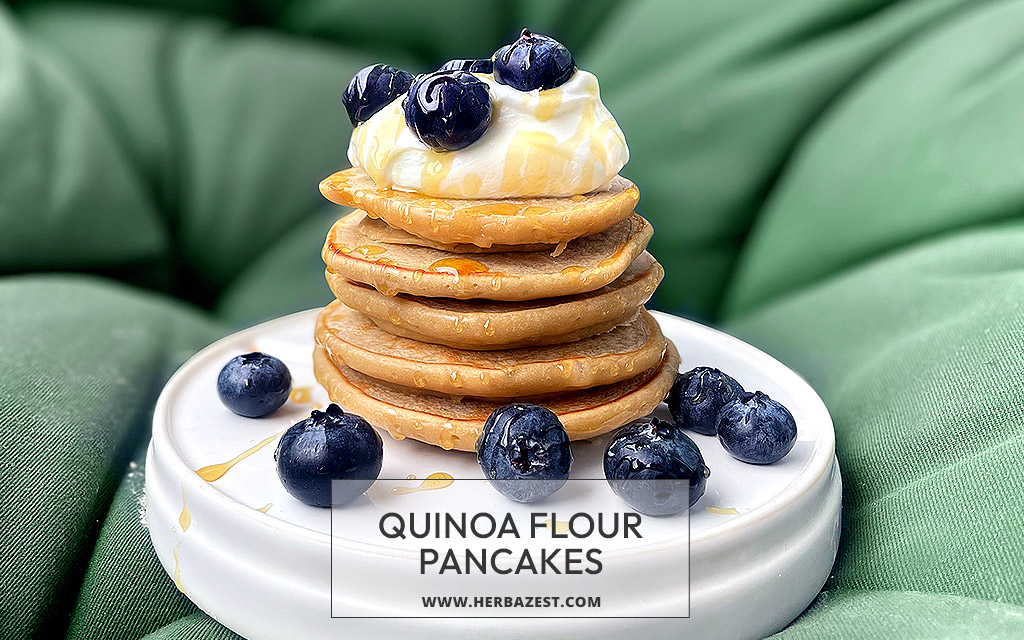Enjoy quinoa pancakes topped with Greek yogurt or coconut cream, drizzled with honey or maple syrup, and served your favorite fruits, such as blueberries, strawberries, or bananas.