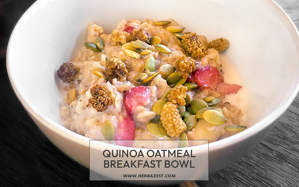 Adding quinoa to breakfast meals is a great way to start the day with a hearty dose of protei and complex carbs. This breakfast bowl recipe combines quinoa flakes with oats as well as chia and flax for healthy fats, creating a balanced morning meal that will keep you well-nourished and full for longer.