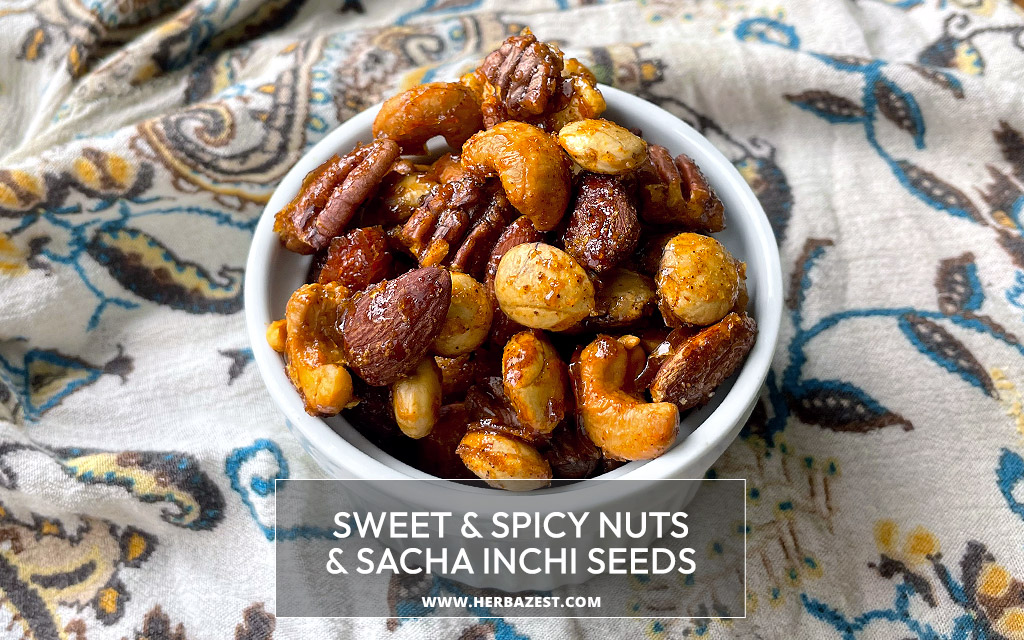 This recipe brings out the best in roasted nuts and sacha inchi seeds by coating them in a warm, sweet, and gently spicy blend inspired by pantry spices like onion, garlic, bell peppers, black pepper, chili, and cayenne. As they roast, the honey and seasonings caramelize, creating an irresistible aroma and balanced flavor. It is a snack that feels indulgent, energizing, and impossible to stop eating.