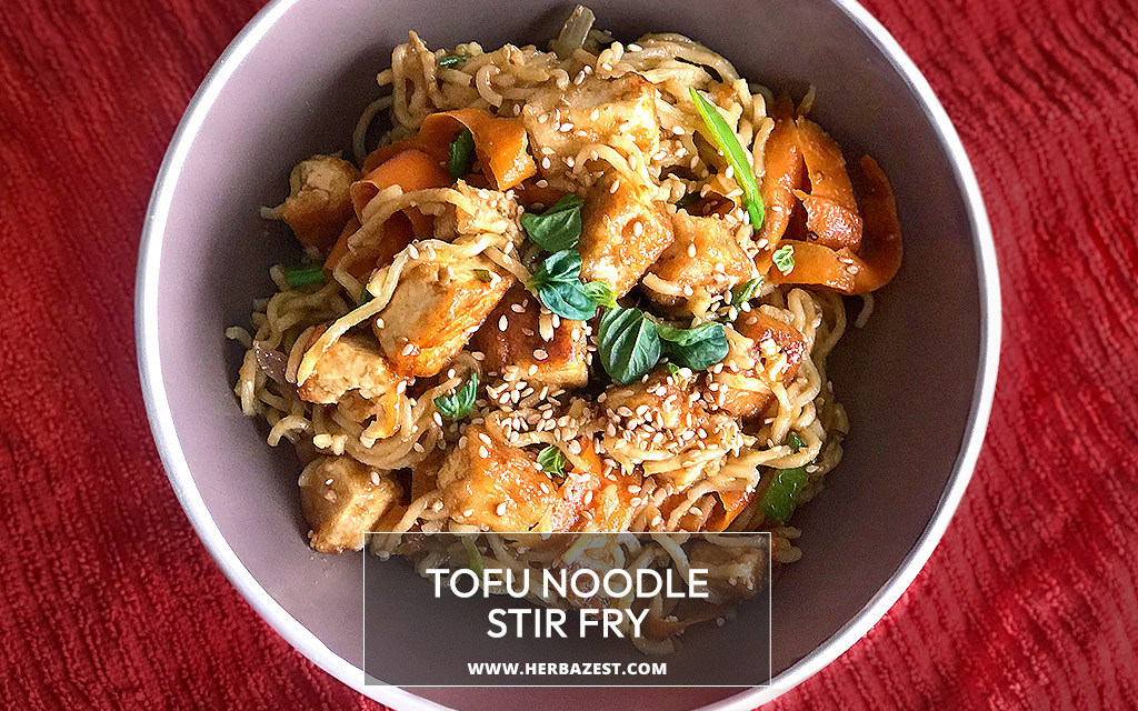 - Remove the skillet from the heat and add the tofu, noodles, and the sauce. Give everything a good mix. Serve right away. Enjoy!(3 minutes)